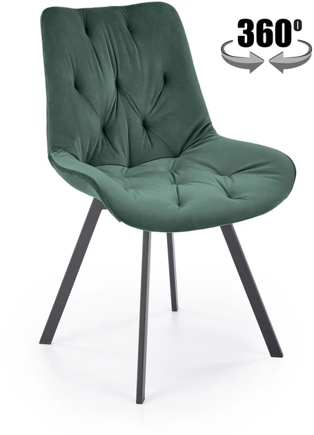 Крісло K519 вражає своїм елегантним, сучасним виглядом. Його стьобана спинка в поєднанні з ергономічним сидінням створюють надзвичайно зручний та стильний предмет меблів. Оббивка, виготовлена з високоякісної темно-зеленої оксамитової тканини (Bluvel 78), м'яка та приємна на дотик, що надає кріслу розкішного відчуття. Міцні ніжки з чорної сталі з порошковим покриттям гарантують стійкість та довговічність, підкреслюючи сучасний вигляд крісла. Функція повороту на 360 градусів додає кріслу практичності та комфорту.