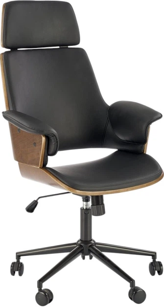 Fotel biurowy Halmar Weber w kolorze orzechowo-czarnym łączy klasykę z nowoczesnością. Ciepły odcień orzecha harmonijnie współgra z elegancką czernią. Wysokie oparcie wspiera plecy podczas wielogodzinnej pracy. Miękkie siedzisko podnosi komfort codziennego użytkowania. Regulacja wysokości umożliwia dostosowanie do stanowiska pracy. Stabilna podstawa z kółkami zapewnia mobilność. Solidne wykonanie gwarantuje trwałość na lata. Fotel doskonale prezentuje się w gabinecie menedżerskim. Stylowe wykończenie podkreśla profesjonalny charakter wnętrza. To funkcjonalny model dla wymagających użytkowników.