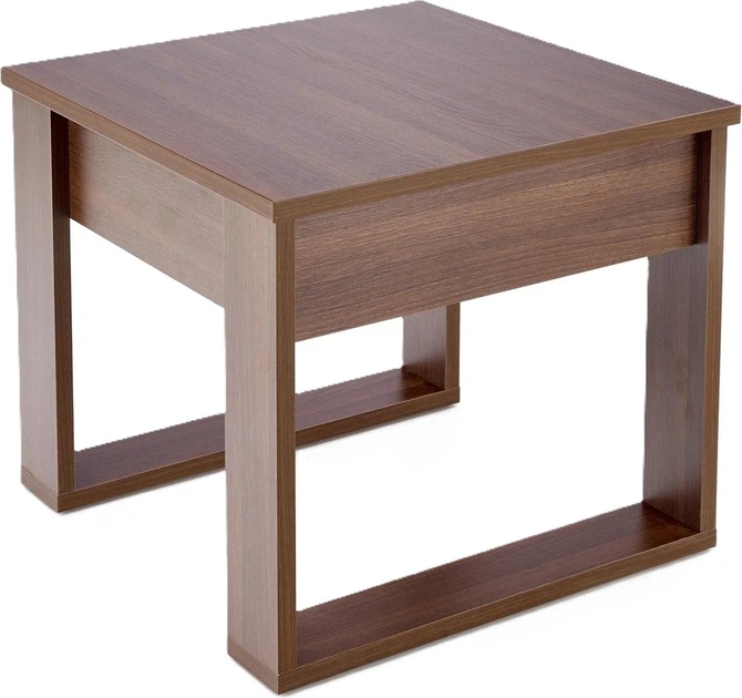 Цей сучасний квадратний журнальний столик має елегантне оздоблення з темного горіха. Ідеально підходить для віталень, кабінетів або приміщень у сучасному, класичному чи лофтовому стилях, він додає тепла, гармонії та позачасового характеру будь-якому інтер'єру.