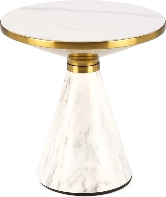 Цей сучасний та надзвичайно елегантний журнальний столик поєднує три гармонійні акценти: стільницю під білий мармур, білий корпус та золоту раму. Це стильний декоративний елемент, ідеальний для віталень, кабінетів або інтер'єрів у гламурному, сучасному, класичному та сучасному стилях.