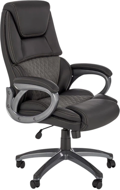 Офісний стілець Halmar Steven чорного та сірого кольорів поєднує в собі сучасний дизайн та комфорт. Поєднання темних та світлих тонів надає йому елегантності та універсальності. Ергономічна спинка забезпечує належну підтримку спини під час роботи. М'яке сидіння підвищує комфорт навіть під час тривалої роботи. Регулювання висоти дозволяє ідеально прилягати до столу. Поворотна основа полегшує переміщення по кімнаті. Стабільна конструкція гарантує безпечне використання. Оббивка міцна та стійка до плям. Ця модель має сучасний та професійний вигляд. Це функціональний стілець для офісу та домашнього кабінету.