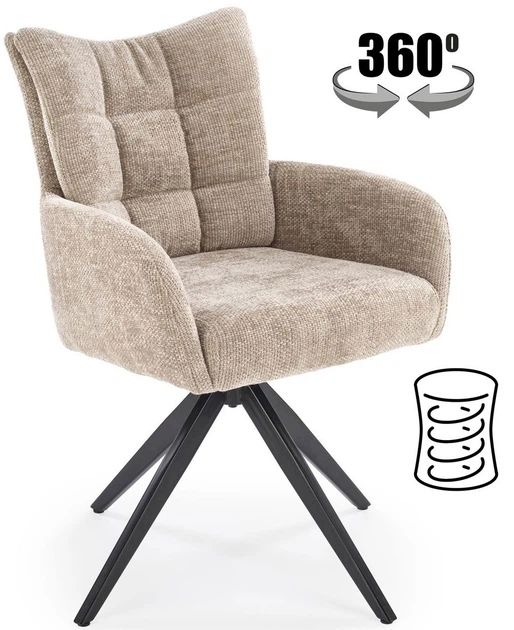 Сидіння та спинка крісла K540 оббиті м'якою тканиною Haga 30, яка не тільки додає шарму, але й приємна на дотик. Цей матеріал дуже стійкий до стирання та легко чиститься, що робить крісло ідеальним вибором як для щоденного використання, так і для інтер'єрів, де елегантність та стиль є першочерговими. Крісло має функцію повороту на 360 градусів, що ще більше підвищує його функціональність, забезпечуючи легке переміщення та доступ до різних зон кімнати.