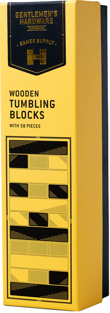 Дерев'яні кидкові блоки – класична гра з преміальною родзинкоюПідніміть планку на ваших світських зустрічах з дерев'яними кидковими блоками від легендарного британського бренду Gentlemen's Hardware. Це не просто аркадна гра – це стильна інтерпретація класики, яка поєднує в собі азарт, точність та міцний, чоловічий дизайн.Незалежно від того, чи ви відпочиваєте в гірській хатині після сходження, насолоджуєтеся вечором на барбекю чи відпочиваєте у вітальні з друзями, цей набір приверне увагу та забезпечить першокласні розваги. Витягніть блок, зберігайте спокій і не дозволяйте вежі зруйнуватися під вашим дотиком!Чому варто обрати набір від Gentlemen's Hardware?• Вічна якість: 57 блоків з масиву дерева забезпечують не тільки довговічність, але й приємні, природні враження під час кожної гри.• Стильна упаковка: Все розміщено в міцній, естетично привабливій коробці з фірмовим дизайном бренду. Цей продукт чудово виглядає на полиці, навіть коли ви в нього не граєте.• Додаткова варіація гри: Кубик, що входить до комплекту, дозволяє вводити нові правила та додаткові складності, роблячи кожну гру ще більш непередбачуваною.• Ідеальний подарунок: Його міцний характер та ретельна майстерність роблять його ідеальним подарунком для чоловіка, який цінує якість, хоча його естетика порадує будь-якого ентузіаста дизайну.Правила гри – Стратегія та майстерністьМета гри – побудувати якомога найвищу вежу, витягуючи блоки з нижніх рівнів та розміщуючи їх зверху.1. Збірка: Збудуйте вежу, розмістивши три блоки на кожному рівні (чергуючи вздовж та по ширині).2. Рух: Використовуючи лише одну руку, витягніть будь-який блок нижче найвищого завершеного рівня.3. Ризик: Помістіть видалений елемент на вершину конструкції. Використовуйте кубик, що входить до комплекту, щоб вирішити, який колір або тип блоку потрібно видалити! 4. Фінал: Гравець, який спричиняє обвал вежі, програє.Технічні характеристики:• Бренд: Gentlemen's Hardware• Матеріал: Натуральне дерево• Кількість деталей: 57• Аксесуари: Кубики, декоративна коробка• Призначення: Гра для вечірок для дорослих та сімей