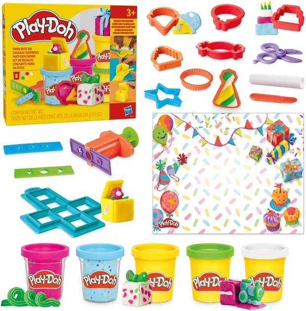 Play-Doh — яскравим і веселим способом створити власні подаруночки з маси для ліплення. Просто заповніть форму, розкачайте, складіть — і прикрасьте! Ідеальний набір для днів народження, свят або просто для гарного настрою.