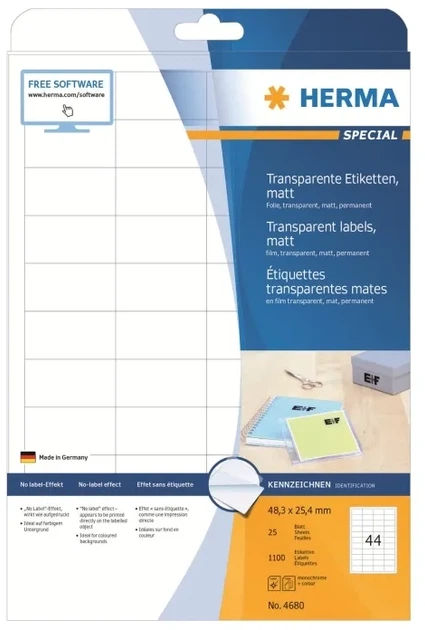 Опис продукту: HERMA Special — плівкові етикетки — матові — 1100 етикеток — 48,3 × 25,4 мм