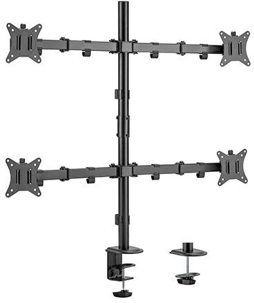 Завдяки міцній сталевій конструкції HS082437 забезпечує стійку підтримку двох моніторів із діагоналлю від 17 до 32 дюймів вагою до 9 кг (19,8 фунтів) на кронштейн. Гнучка конструкція для широкого регулювання та кутів огляду, регульована для портретної або альбомної орієнтації. Для встановлення на будь-якій робочій поверхні передбачені кріплення з прорізом та затискачем. Знімна пластина VESA для зручного встановлення. Кабельні затискачі в комплекті для організованого та вільного від безладдя робочого місця.