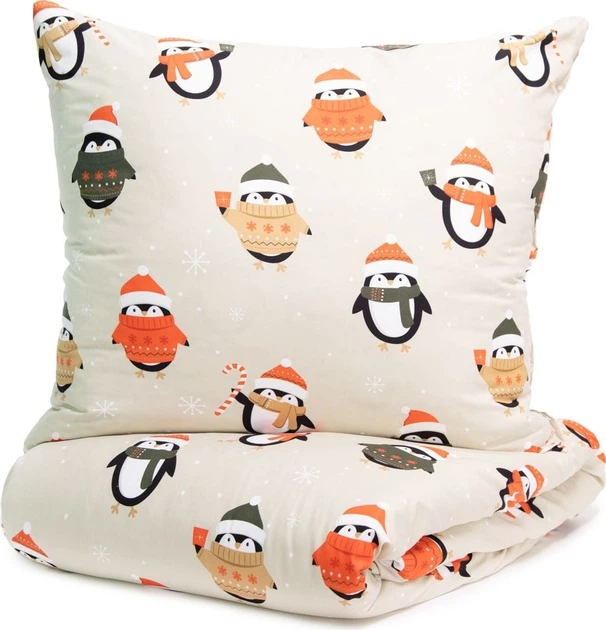 Різдвяний комплект постільної білизни Fairley з чарівним візерунком пінгвіна – ідеальний вибір, щоб створити затишну зимову атмосферу у вашій спальні. Комплект включає підковдру розміром 140 x 200 см та одну наволочку розміром 70 x 80 см.