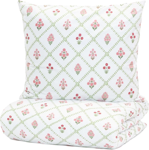 Комплект постільної білизни Homla Narine Підковдра 140 x 200 см з квітковим принтом + 1 наволочка на подушку 70 x 80 см зелено-червоний (5904183880273)