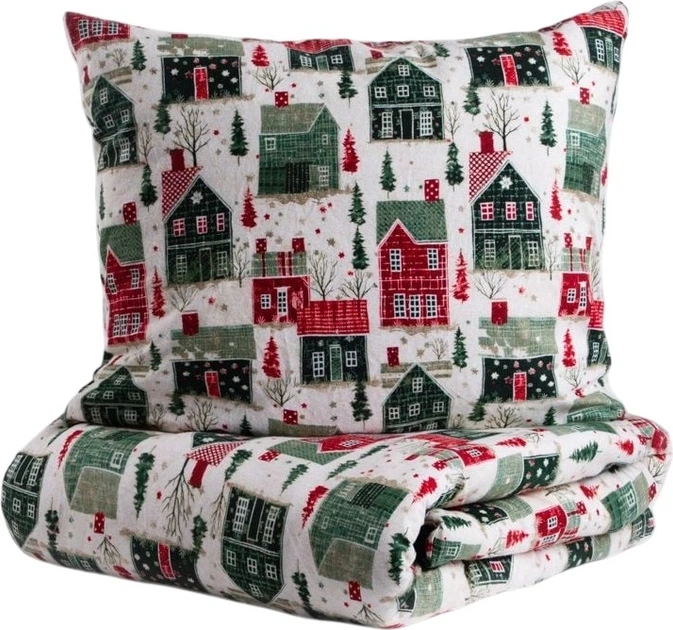Stwórz w swojej sypialni wyjątkowy, świąteczny nastrój dzięki pościeli Glora z miękkiej flaneli bawełnianej, ozdobionej uroczym wzorem w domki. Zestaw został zaprojektowany z myślą o Bożym Narodzeniu — doskonale uzupełni świąteczną aranżację wnętrza, wprowadzając do niego ciepło i przytulność. Pościel nie tylko pięknie się prezentuje, ale również zapewnia komfortowy i spokojny sen.