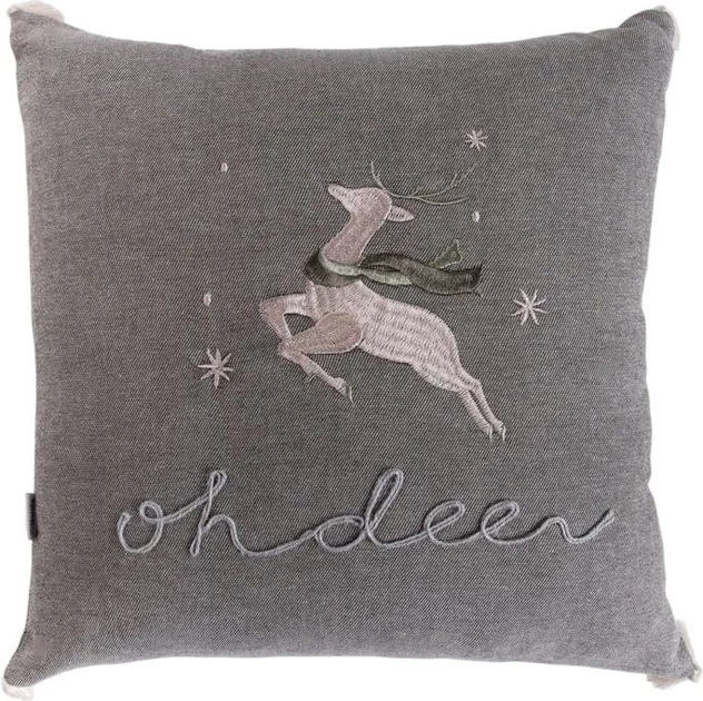 Наволочка Albiero — очаровательное, праздничное дополнение, которое привнесет тепло и неповторимую атмосферу в ваш интерьер. Изящная вышивка с изображением бегущего оленя и ненавязчивая надпись «О, олень» добавляют очарования и легкости, а декоративные помпоны по углам подчеркивают ее декоративный характер. Это идеальный вариант для тех, кто ценит элегантные детали и уютные зимние украшения.