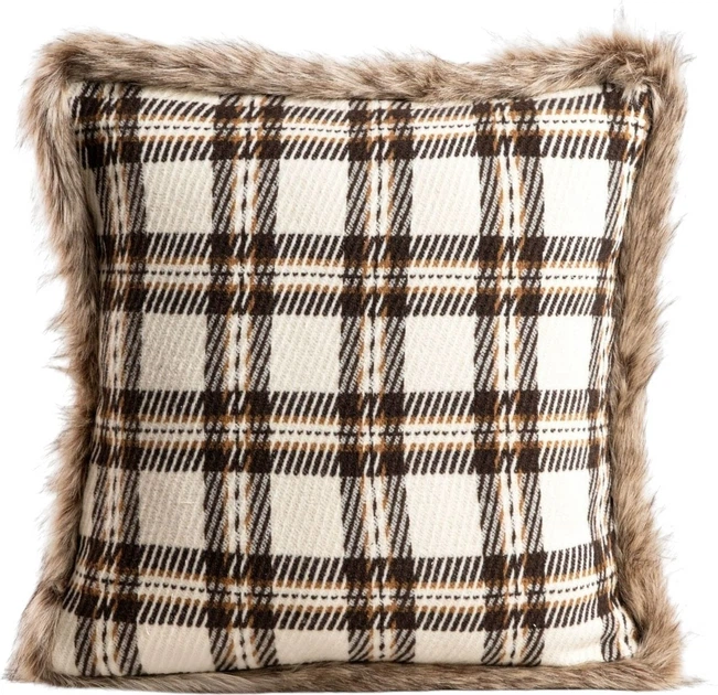 Хочете створити затишну атмосферу з ноткою елегантності у своєму інтер'єрі? Наволочка Abebo – ідеальний вибір. Класичний картатий візерунок у відтінках бежевого, коричневого та сірого кольорів створює гармонію, а м'яка хутряна обробка додає тепла та унікального характеру. Це стильне доповнення, яке чудово прикрасить ваш інтер'єр, особливо в осінні та зимові місяці.