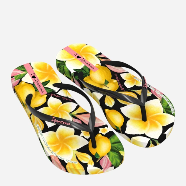 Жіночі в'єтнамки для пляжу Ipanema Arte Ad — це легке та стильне взуття для літнього відпочинку. Яскравий принт із квітами та лимонами створює сонячний настрій і додає образу свіжості. Синтетичний верх добре переносить контакт із водою, а підошва зі штучного матеріалу забезпечує комфорт і легкість під час ходьби на пляжі або біля басейну.
