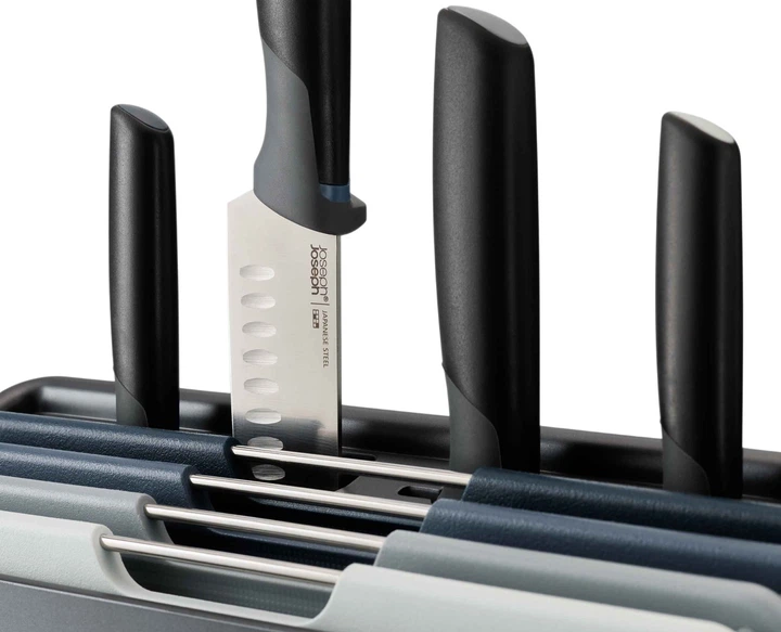 Joseph Joseph Folio – це функціональне та сучасне рішення для будь-якої кухні. Набір поєднує в собі практичні обробні дошки, високоякісні ножі та тонкий футляр для організованого та гігієнічного зберігання.