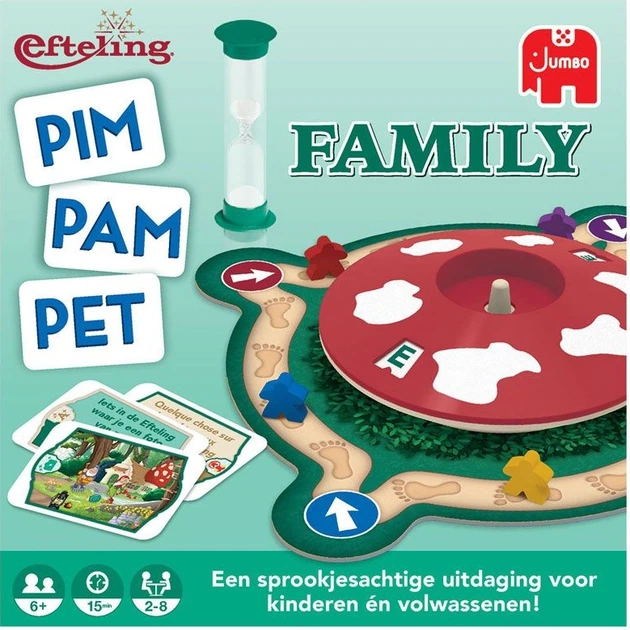 Популярна гра з питаннями та відповідями, Ефтелінг! Заробіть якомога більше квитків, відповідаючи на запитання якомога швидше. Індикатор, що обертається, показує, з якої літери має починатися відповідь. Сімейна гра «Пім Пам Пет Ефтелінг» – це чудова розвага для всієї родини. Щось, що ви бачите в Ефтелінгу на літеру А? «Американські гірки!» Дорослі чекають 5 секунд, перш ніж зможуть відповісти, тому всі мають рівні шанси на перемогу.