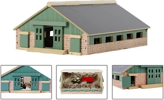 Цей дерев'яний корівник у масштабі 1:32 стане ідеальним доповненням до дитячої ферми. Кожна деталь ретельно продумана – ворота, що відкриваються, вікна та міцна конструкція з імітацією цегли та дерева створюють реалістичне ігрове середовище. Просторий інтер'єр дозволяє дітям вільно розміщувати фігурки тварин, сільськогосподарську техніку та годівниці.