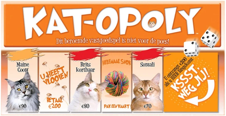 Cat-Opoly – це гра про нерухомість, заснована на традиційній "Монополії", але замість готелів ви збираєте котячі туалети. Якщо вам доведеться потрапити до в'язниці, ви йдете до притулку, або вам доведеться платити, якщо у вас є блохи. Ця гра пропонує безмежне задоволення!
