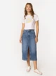 Жіноча джинсова спідниця від Lee Cooper — це стильний і універсальний елемент гардероба, який легко поєднується з різними образами. Виготовлена з джинсової тканини, що містить бавовну та еластан. Спідниця має ідеальне поєднання м’якости та еластичності, що забезпечує комфорт та свободу рухів. Довжина міді додає елегантності та дозволяє створити стильні комбінації з різним взуттям і верхнім одягом. Висока посадка підкреслює талію та надає фігурі витонченості, а прямий крій створює сучасний і зручний силует. Кишені додають практичності, дозволяючи носити необхідні дрібниці, а лямки для ременя дають можливість додати аксесуар для створення ще більш виразного образу. Спідниця застібається на ґудзик та блискавку, що робить її зручною у носінні. Модель має розріз спереду, що додає родзинку, а помітні потертості надають спідниці характеру і сучасного вигляду. Ця спідниця стане чудовим вибором для будь-якої повсякденної активності, гармонійно поєднуючи з футболками, блузами або куртками, і підходить як для офісного стилю, так і для прогулянок в місті.