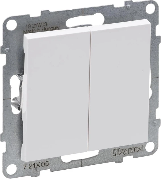 Вимикач для світильників Legrand Suno 10 A 721105 білого кольору дозволяє незалежно керувати 2 освітлювальними контурами з однієї точки. Рішення 2 × 1-полюсне підходить для багатоточкових світильників, бра або приміщень, де необхідне окреме вмикання частини джерел світла.
