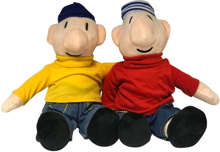 Ten zestaw dwóch maskotek przedstawia kultowych bohaterów klasycznej animacji "Sąsiedzi" (Pat i Mat), znanych ze swoich zabawnych perypetii remontowych. Oba pluszaki mierzą po 35 cm wysokości i są wiernym odwzorowaniem charakterystycznych postaci w ich typowych strojach – żółtym i czerwonym golfie oraz czapkach. Wykonane z miękkiego materiału, są świetne zarówno do zabawy w odgrywanie scenek, jak i jako nostalgiczna dekoracja pokoju. Ich sympatyczne, lekko zagubione miny idealnie oddają ducha bajki i wywołują uśmiech na twarzy każdego, kto je zobaczy. To doskonały prezent, który łączy pokolenia i przypomina o humorystycznych przygodach dwóch zaradnych inaczej przyjaciół.