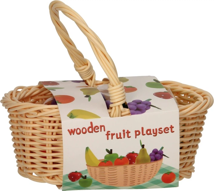 Набір для гри Lobbes фрукти в кошику для пікніка дерев'яний 7510177 (3800966033770)