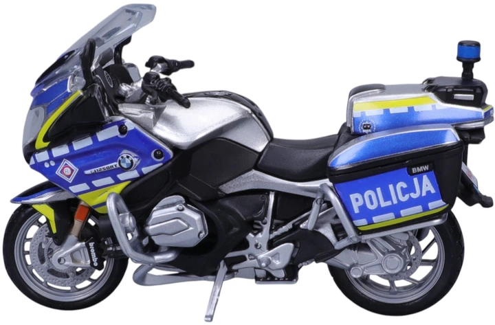 Ця модель поліцейського мотоцикла в масштабі 1:18 у кольорах польської поліції є точною репродукцією службового автомобіля, готового до дії. Реалістичні деталі, маркування та металева конструкція відображають професійний характер оригіналу.