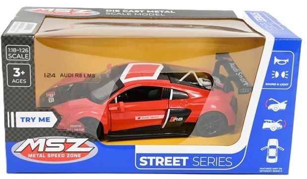 Ця модель зображує гоночний автомобіль Audi R8 LMS у вражаючому червоному забарвленні. Масштаб 1:24 дозволяє точно відтворити аеродинамічні деталі кузова. Характерний силует з низькою лінією даху підкреслює гоночний характер автомобіля. Великий задній спойлер додає динамічного вигляду. Металевий кузов забезпечує міцність та довговічність. Двері, що відкриваються, дозволяють зазирнути у спортивний інтер'єр. Реалістичні диски та гумові шини підкреслюють автентичність мініатюри. Насичений червоний колір привертає увагу та оживить будь-яку колекцію. Модель втілює дух сучасних гонок GT. Це ідеальний вибір для шанувальників німецького автоспорту. Мініатюра чудово виглядає у вітрині. Вона поєднує в собі точність, потужність та спортивну елегантність.