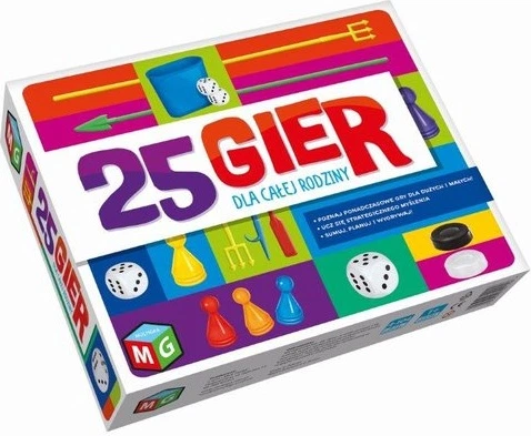 25 ігор пропонують розваги для всієї родини. Відкрийте для себе найцікавіші ігри світу, зокрема: 7 видів шашок, піраміду, вовка та вівця, го-бенг та мін-ман. А також два види популярних лудо та грабіжника. Набір містить улюблені кирки, кубики та колоду карт.