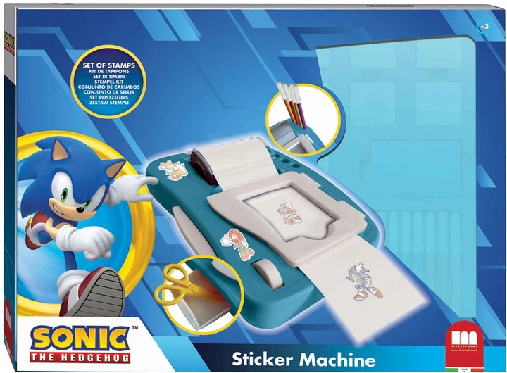 За допомогою цього веселого диспенсера для штампів та малюнків ви можете створювати власні «наліпки» із зображенням ваших улюблених персонажів Соніка. Зробіть відбиток на пластиковій рамці дерев'яним штампом та розфарбуйте його маркерами, що додаються. Тепер поверніть рулон паперу, щоб вийняти зображення з рамки, та виріжте його ножицями, що додаються та зручно зберігаються в шухляді під диспенсером. Виріжте барвистий штамп та приклейте зображення куди завгодно!