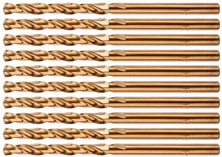 Wiertło do metalu HSS-Co 4.2 mm, 10 szt. 57-026-10 marki Neo Narzędzia do głębokiego wiercenia zgodnie z normą DIN 338, wykonane ze stali M35 z 5% dodatkiem kobaltu. Zastosowano w nim künt wierzchołkowy 135° orak korekcjon ścinu typu C. Posidad słoduch cylindriczny. Długość części roboczej wynosi 43 mm, a jej długość całkowita wynosi 75 mm. Maksymalne prędkości obrotowe: INOX 875–950 obr/min, metale 1750–1900 obr/min. Przeznaczeni tego wiertła brandi Neo Tools do wiercenia w materiałach specjalistycznych, takich jak stal nierdzewna, kwasoodopdrona i żaroodporna.