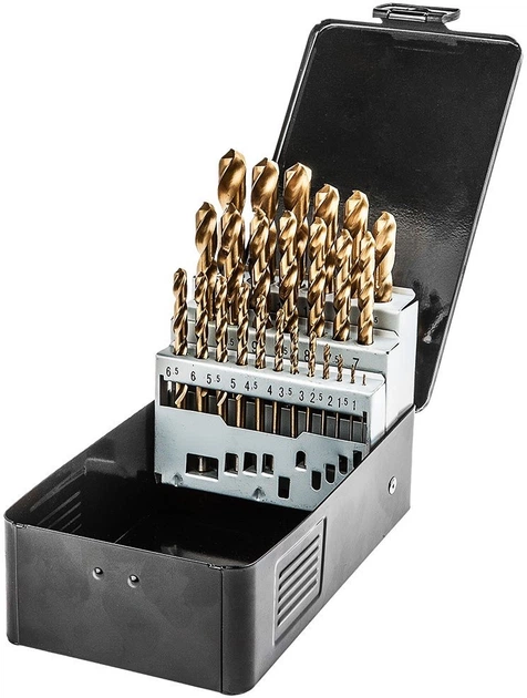 - Zestaw wierteł: 1.0, 1.5, 2.0, 2.5, 3.0, 3.5, 4.0, 4.5, 5.0, 5.5, 6.0, 6.5, 7.0, 7.5, 8.0, 8.5, 9.0, 9.5, 10.0, 10.5, 11.0, 11.5, 12.0, 12.5, 13.0 mm