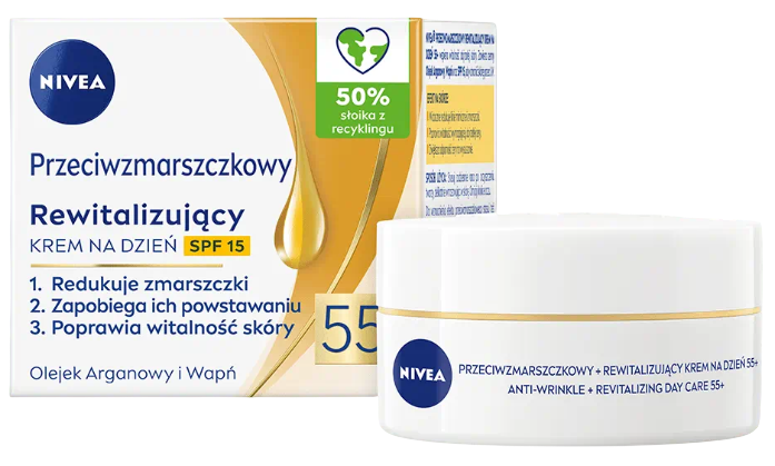 Відновлювальний крем для обличчя Nivea проти зморшок – ідеальний вибір на кожен день. Його формула поєднує інтенсивну дію проти зморшок з ніжним фільтром SPF 15, захищаючи шкіру від шкідливих ультрафіолетових променів. Регулярне використання робить шкіру помітно гладшою та пружнішою. Легка текстура легко розподіляється, не обтяжуючи шкіру. Продукт забезпечує відчуття інтенсивного зволоження протягом усього дня. Багатство відновлювальних інгредієнтів надає шкірі здорового сяйва. Крем діє як щоденний захисний щит від ознак старіння. Всього після кількох застосувань шкіра виглядає молодшою та сяючою. SPF 15 – додатковий бонус для тих, хто активний на свіжому повітрі. Цей крем надає обличчю природного заряду життєвої сили та енергії. Регулярне використання зміцнює гідроліпідний бар'єр шкіри. Це ідеальний догляд за зрілою шкірою, яка потребує оновлення.