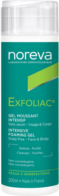 Гель для очищення обличчя Noreva Laboratoires Exfoliac – ідеальний вибір для щоденного догляду за жирною та схильною до акне шкірою, поєднуючи ефективне очищення з ніжним доглядом та регенеруючими властивостями.