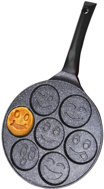 Ця сковорода діаметром 27 см дозволяє готувати смачні яєчні, ваші улюблені млинці на сніданок та міні-крепи. Сковорода має 7 спеціальних отворів для ідеальних млинців. Завдяки отворам у сковороді ви можете бути впевнені, що ваші млинці просмажаться рівномірно, а покриття Pfluon Granit запобігає їх прилипанню до поверхні та дозволяє використовувати лише мінімальну кількість жиру. Ця сковорода також ідеально підходить для приготування яєць. Відмінна теплопровідність матеріалу виключає втрати тепла, заощаджуючи ваш час під час приготування. Вона підходить для всіх типів плит, включаючи індукційні. Має ручку з міцного пластику, що не прогрівається. Це оригінальний продукт чеського бренду Orion. Виготовлено відповідно до європейських стандартів.