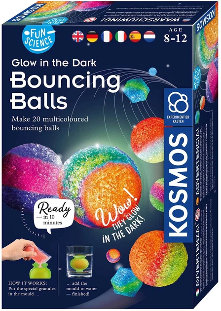 Створіть власні барвисті кульки-надувки, що світяться в темряві! Використовуючи спеціальні гранули та форми, ви можете створювати власні сферичні та кутасті кульки-надувки різних кольорів. Ці кульки не містять добавок, тому залишаються м’якими.