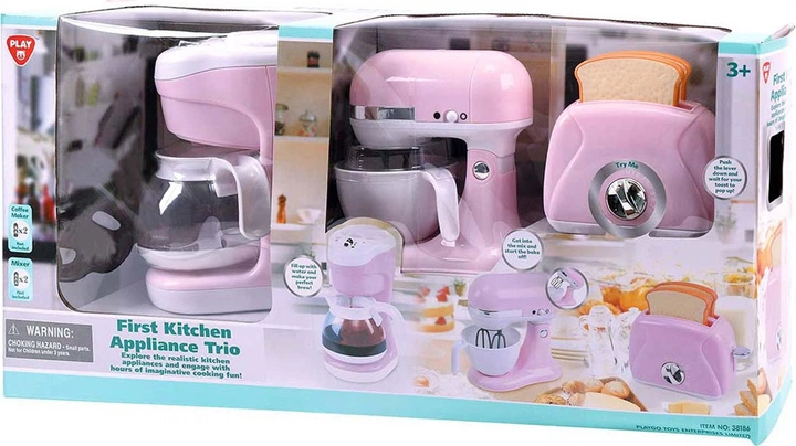 Ten kolorowy zestaw pozwoli Ci przygotować pyszną kawę, ciastka i tosty! Zawiera ekspres do kawy, blender i toster dla maluchów. Zupełnie jak mama i tata!