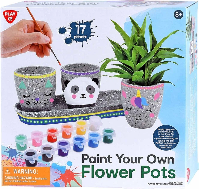 Цементні горщики, що самостійно фарбуються, підходять для дітей віком від 8 років. Кожен набір містить 3 цементні горщики, 1 горщик для фарби, 12 горщиків для фарби та 1 пензель. Внутрішній діаметр кожного горщика становить приблизно 6 сантиметрів, а висота кожного горщика – приблизно 8,5 сантиметра.