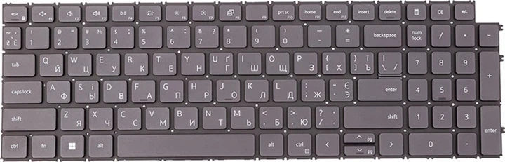 Клавіатура для ноутбука Особливості: - Ідеальна посадка клавіатури в корпус ноутбука. - М'який хід клавіш і практично безшумне натискання. - Приємні тактильні відчуття. - Оптимальний розмір клавіш і вдало скомпонована розкладка. - Англійська та російська розкладки. - Підсвічування клавіш. Характеристики: Розкладка: Англійська / Російська. Колір: Чорний. Розмір: 330х105х5 мм. Вага: 88 г. Розмір в упаковці: 380х140х30 мм. Вага в упаковці: 178 г. Гарантія: 3 місяці. Сумісні моделі: DELL Vostro 15 3510 3515 3520 P112F 3525 5510 5515 7510 16"inch Vostro 5620 5625 7620 / P117F003 15.6/16.