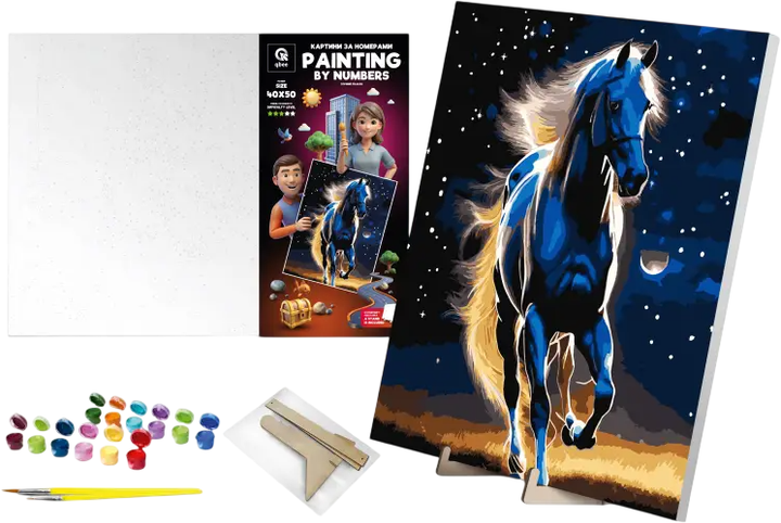 Zestaw do malowania po numerach qbee Dumny rumak z farbami metalicznymi i drewnianą podstawką 40x50 cm (900-015) - obraz 1