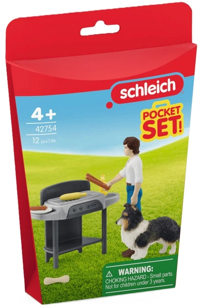 «Том Гриль» – це невеликий набір, з яким можна гратися окремо або в поєднанні з іншим, більшим набором Schleich (продається окремо). Час для вечері на свіжому повітрі! Том вважається чудовим кухарем у Лейксайді. Сьогодні він готує кукурудзу та ковбаски на грилі. Ням! Кохлатий песик також хоче перекусити! Можливо, там є трохи свіжої кістки?