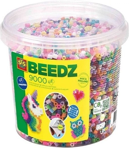 Відкрийте для себе творчий світ Ses Beedz! Цей набір із 9000 різнокольорових намистин для прасування не лише гарантує нескінченну веселощі, але й допомагає розвивати дрібну моторику дітей. Вони не містять ПВХ, тому безпечні для вашої дитини та навколишнього середовища.