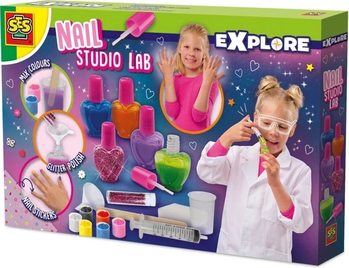 «Лабораторія нейл-арту» від Ses Creative – це набір, який дозволяє юним любителям краси створювати унікальні лаки для нігтів та блискітки, не виходячи з дому. Поєднуючи креативність з наукою, цей набір містить органічні блискітки, кольорові барвники для лаків для нігтів, шприц, лійку, пляшечки для зберігання, палички для змішування, аркуш наклейок для нігтів, губку та прості інструкції.