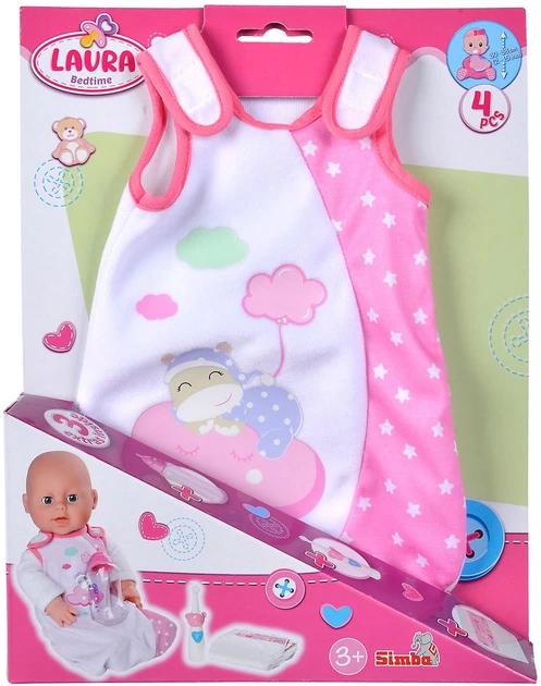 Набір із 4 аксесуарів для ляльки Сімба Лаури. У комплект входить пляшечка, спальний мішок, підгузок та дитяча зубна щітка. Підходить для дітей віком від 3 років. Лялька продається окремо.