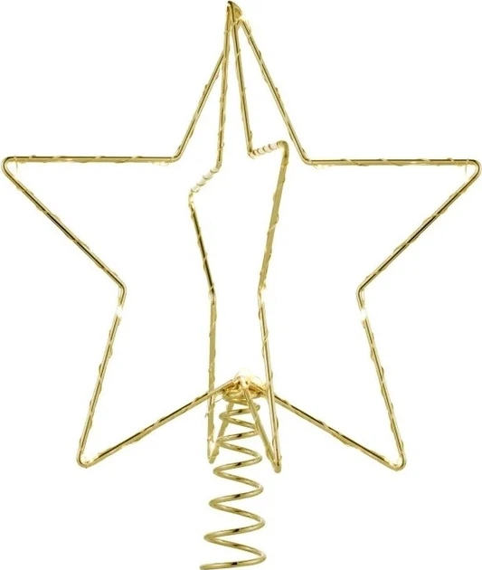 Ялинкова зірка не важка, тому діти також можуть її підняти без проблем. Наша ялинкова верхівка Christina доступна в золотому кольорі і розроблена на основі класичної п'ятикутної ялинкової зірки. Вона складається з двох різних зірок, що надає їй 3D-ефекту. Навколо всієї ялинкової зірки намотано 30 світлодіодних лампочок, завдяки чому ялинкова зірка красиво світиться теплим білим кольором. Цей колір є фірмовим кольором Sirius і є класичним та популярним кольором на півночі.