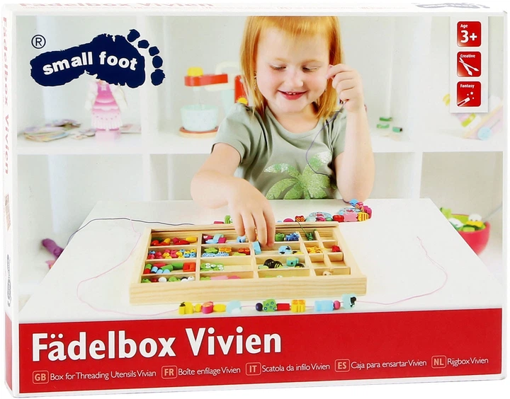 Створюйте найгарніші браслети та намиста з цим набором дерев'яних намистин. Нанизуйте різноманітні намистини з ретельно підібраної коробки та з гордістю носіть власні дизайни. Коробка для намистин містить 19 відділень з 6 кольорами ниток та численними дерев'яними намистинами веселих кольорів. Гра з набором намистин стимулює уяву та творчість.