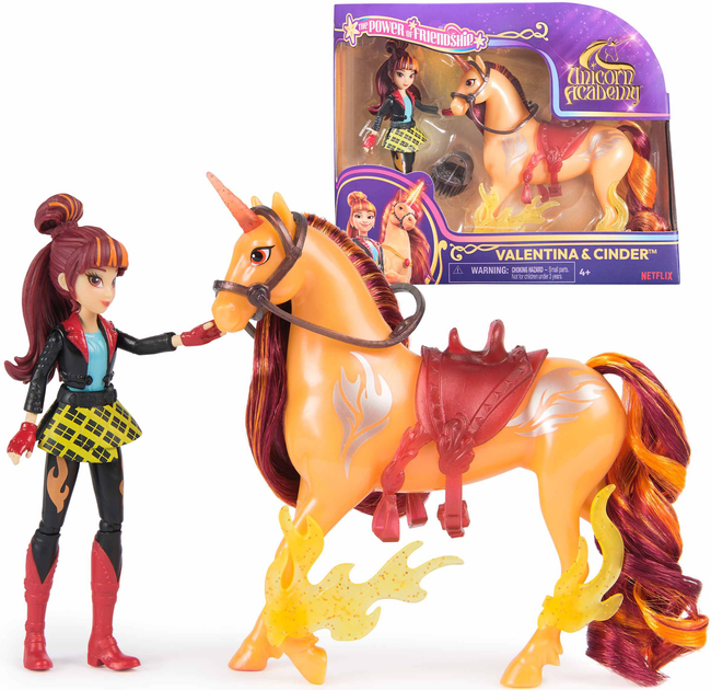 Цей набір із лялькою Валентиною та єдинорогом Флеймом переносить дітей до чарівної Академії єдинорогів. Персонажі деталізовані та доброзичливі. Ця іграшка заохочує до творчої гри та створення власних історій. Компактний розмір дозволяє легко брати набір із собою. Це ідеальний подарунок для шанувальників серії.