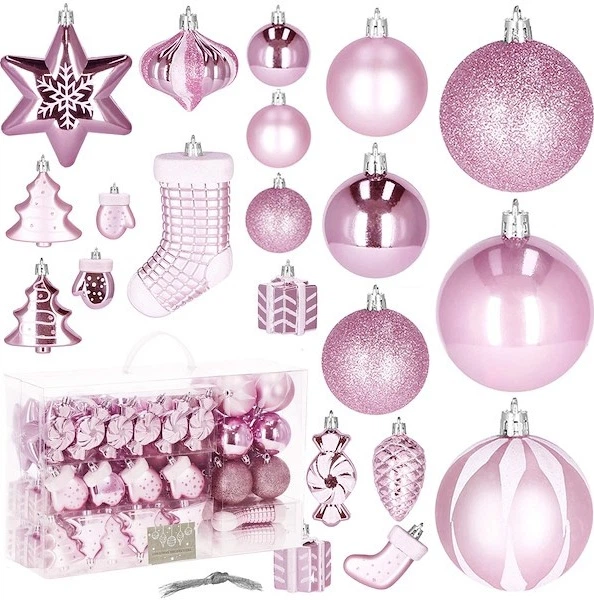 Перенесіть себе в країну різдвяних мрій! Цей набір із 77 кульок Springos ніжного рожевого кольору ідеально підходить для тих, хто хоче надати своїй ялинці унікального, витонченого та легкого характеру. Рожевий – це колір радості та сучасної елегантності – він виглядає неймовірно свіжо на зелених гілках, створюючи затишну та чарівну атмосферу в будь-якому інтер'єрі.