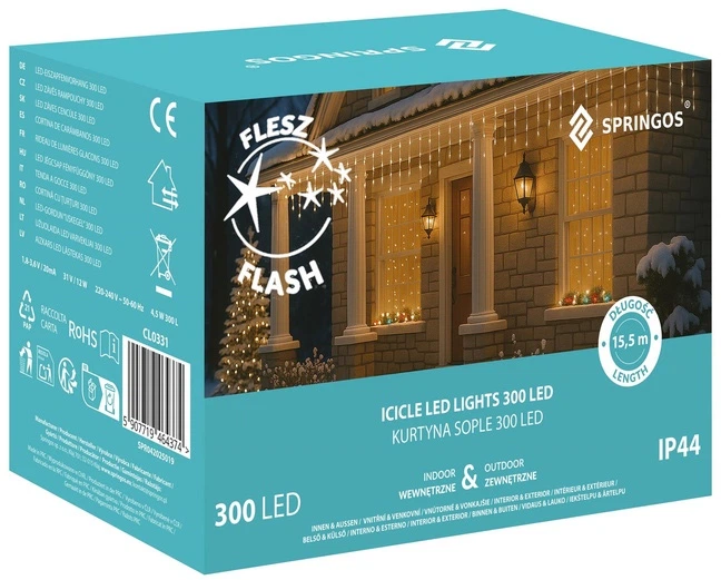 Світлодіодні вуличні штори Springos Icicle Flash 300 – це елегантна прикраса, яка ідеально імітує ефект висячих бурульок. Динамічне спалахуюче світло додає унікальної легкості та сучасного характеру. Штора ідеально підходить для декорування фасадів, балконів, карнизів дахів та парканів. Світлодіоди випромінюють яскраве, чисте світло, яке чудово виглядає після настання темряви. Розроблена для використання на вулиці, ця прикраса є міцною та стійкою до погодних умов. Рівномірний розподіл світла створює цілісну та естетично приємну композицію. Штора додає елегантності та зимової атмосфери простору. Енергозберігаюча технологія дозволяє використовувати її тривалий час без надмірного споживання енергії. Встановлення просте та зручне. Світла ідеально поєднуються з іншими різдвяними прикрасами, створюючи вражаючу атмосферу для вашого дому під час свят. Це ідеальний спосіб підкреслити унікальний характер вашого зимового декору.