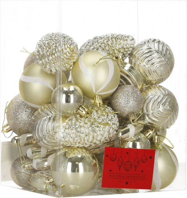 • Легка та гармонійна композиція: Різні розміри та мала вага прикрас дозволяють легко розміщувати їх навіть на ніжних, живих гілках. Ваша ялинка збереже свою природну, струнку форму, залишаючись багато та густо прикрашеною.