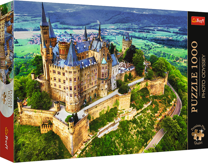 Пазл Замок Гогенцоллерн, Німеччина зображує увінчаний вежами замок XIX століття, розташований на вершині гори.