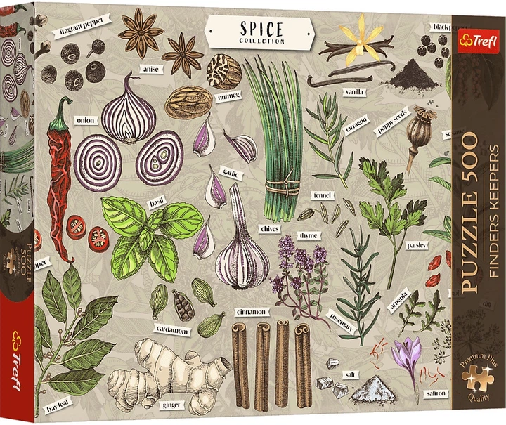 Преміум-якість Plus — новий рівень розв’язання головоломок. Відкрийте для себе головоломки, що вирізняються ідеальною посадкою, високоякісним картоном та ретельно підібраними зображеннями. До комплекту входить постер для зручності складання. Пазл «Хто знайшов: той, хто знайшов: спеції» містить ілюстровану колекцію спецій, трав та овочів, що нагадує кулінарну карту скарбів для будь-якого кулінарного ентузіаста. Після складання отримане зображення має розмір 480 x 340 мм. Цей пазл є частиною надзвичайної серії, яка перенесе вас у світ, де все можливо, а прекрасні, яскраві зображення захоплюють дух.